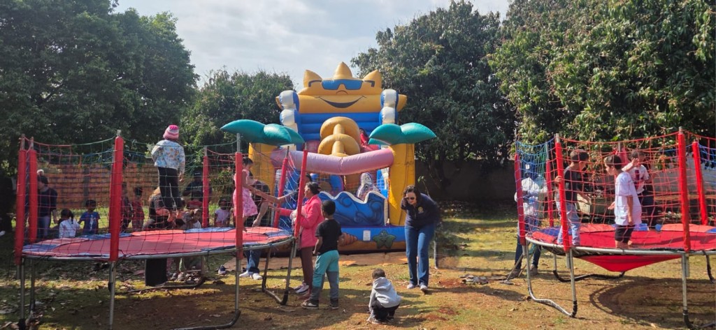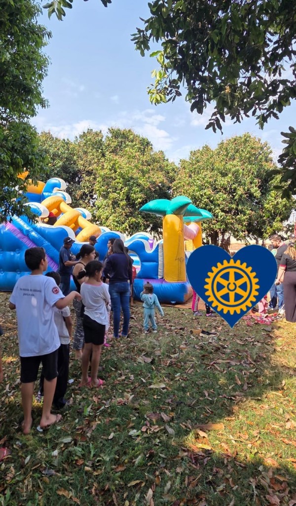 Em um dia de muita diversão, o Rotary e o Rotaract Caviúna foram responsáveis pela locação de brinquedos infláveis, cama elástica e pinturas artísticas, proporcionando atividades recreativas e momentos inesquecíveis para as crianças assistidas pela entidade.