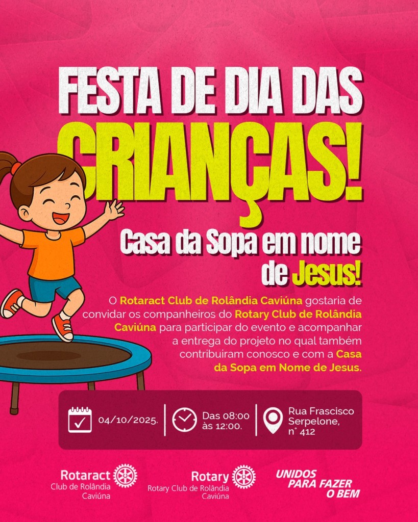 O Rotary Club de Rolândia Caviúna, em parceria com o Rotaract Club de Rolândia Caviúna, dedicou-se a levar alegria e apoio a centenas de crianças carentes do município neste mês de Outubro DE 2025, com a realização de duas importantes ações em celebração ao Dia das Crianças.